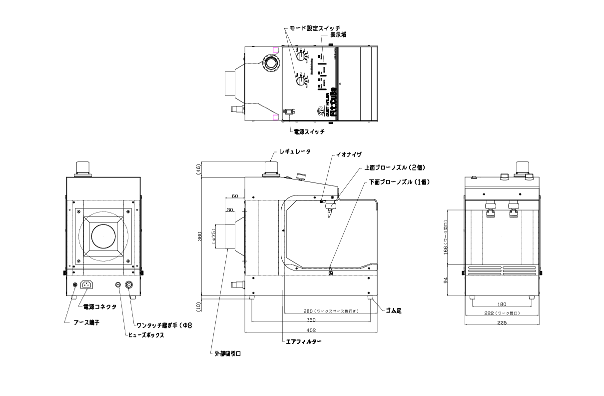 | ブローノズル | 上面:2個(角度可変) 下面:1個 |